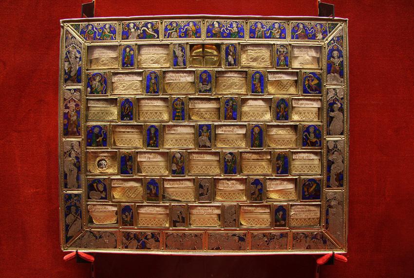 Pieza aipagarrienen artean Zilarrezko Ebanjelioa dago, XIII. mendeko obra erromanikoa, Nafarroako Erdi Aroko urregintzaren gailurretako bat. Bere ondoan, urre-koloreko gotiko-mudejar estiloko zilarrezko kutxatila bat dago, oso apaindua, eta baita Karlomagnoren Xakea izenez ezagutzen den erlikia-ontzi ospetsua ere. Pieza hau XIV. mendekoa da eta bere izena damero moduan antolatuta dago. Erlikia-ontzi honek zurezko arima bat eta partzialki urreztatutako zilarrezko xaflak, esmalte zeharrargiak eta beira konbinatzen ditu, eta museoko objektu berezienetako bat da.