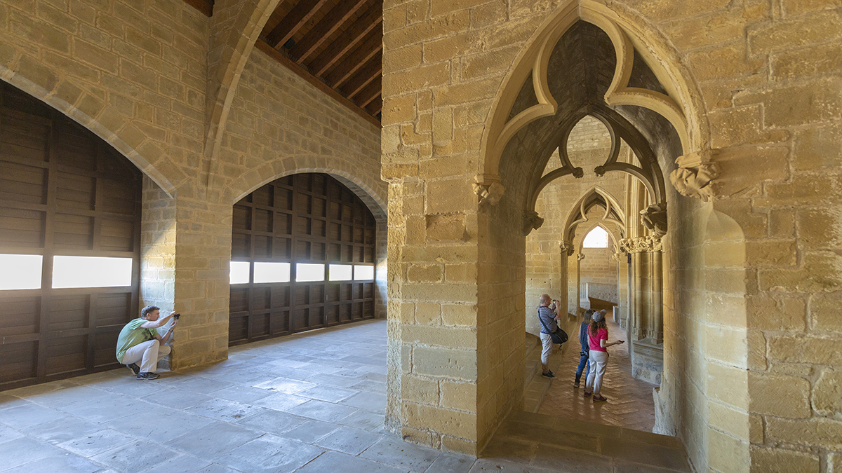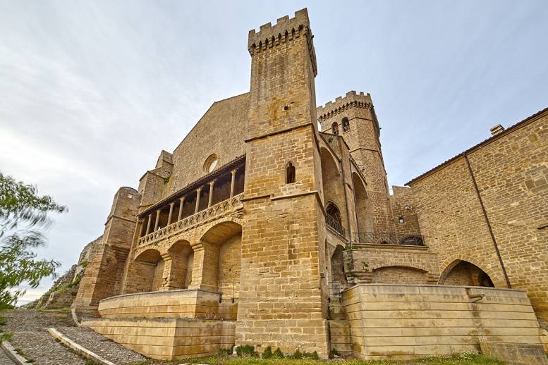 Arkitekturari dagokionez, multzoa harrizko liburu bat da. XI. eta XII. mendeetan, burualde erromanikoa kontserbatzen da, eta XIV. mendean, Nafarroako Karlos II.a erregearen bultzadaz, gaur egun bere zabaltasunagatik eta soiltasunagatik harritzen den nabe gotiko handia eraiki zen. Monarka honi zor zaizkio, baita ere, erronda-pasabide ganga-formakoa eta erantsitako zenbait gela, bai defentsarako bai benetako erabilerarako pentsatuak.